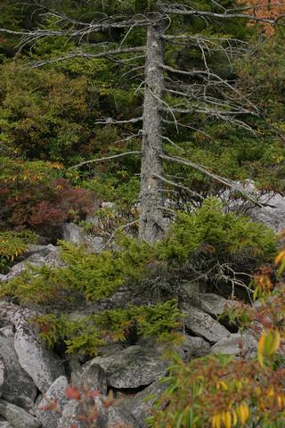A typical Dolly Sods Red Spruce growing in the thin soil of this boulder strewn landscape.