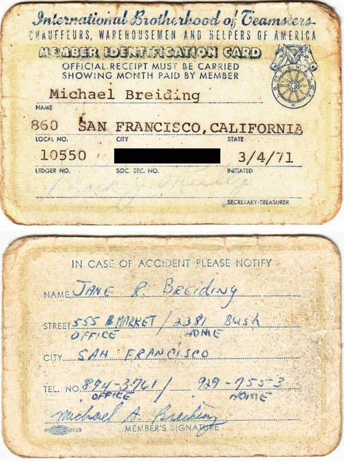 Footnote № 3 above mentions the Teamsters Union. I still have my union card from 1971.