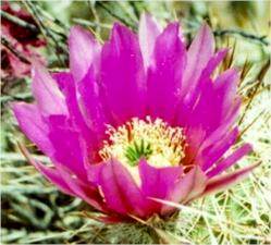 This page presents an overview of the cacti and other succulent plants. It describes their main features, how they are adapted to live in dry environments, and some of their main ecological roles. For "profiles" of more than 25 different cacti and cactus types, go to the Cactus Gallery. To see how cacti are integrated with other components of desert communities, go to The North American Deserts Gallery. The cactus family The cactus family (Cactaceae) contains about 2,500 species, all of which (with one possible exception) are found naturally only in the Americas (North, Central and South America, and the Caribbean Islands). The one exception is the genus Rhipsalis which grows naturally in Sri Lanka, Madagascar and East Africa, but it might have been introduced into those regions at some time in history or might have arrived there by chance. In more recent times, cacti have been introduced into other countries. The most notable example is the prickly pear (Opuntia) which was introduced into Australia and then spread to become a major poblem in rangelands. But we can be confident that the cacti are truly natives of the Americas, where this family of plants evolved and diverged from other types of flowering plant along time ago, because the Cactaceae is not closely related to any other plant family. All plant families are defined by the details of their flower parts. In the case of cacti, the flowers have many petals that intergrade with sepals, so that the two are not easily distinguished. The flowers also have many stamens (male parts that have the pollen-bearing anthers) and a stigma (female flower part) that has several lobes. Those are the defining features of a cactus, shown in the images below, even though they are not the features that first come to mind when we think of a cactus.