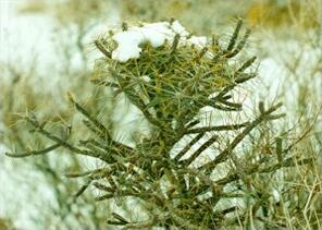The Mojave Desert also contains several cacti, especially chollas and small cacti, although it does not support the larger columnar cacti typical of parts of the Sonoran Desert. The cacti at the upper elevations of the Mojave Desert need to be frost-tolerant, because this desert receives winter precipitation, which sometimes occurs as snow.