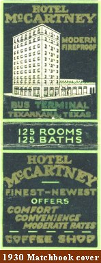 The Hotel McCartney was built by W.A. McCartney Sr.. The Hotel McCartney was completed in 1930 at cost of approximately $500,000 Dollars the architect was Joseph Finger of Houston, Texas.