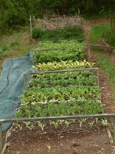 - Hosta lower left: Ginko Craig, Golden Scepter.