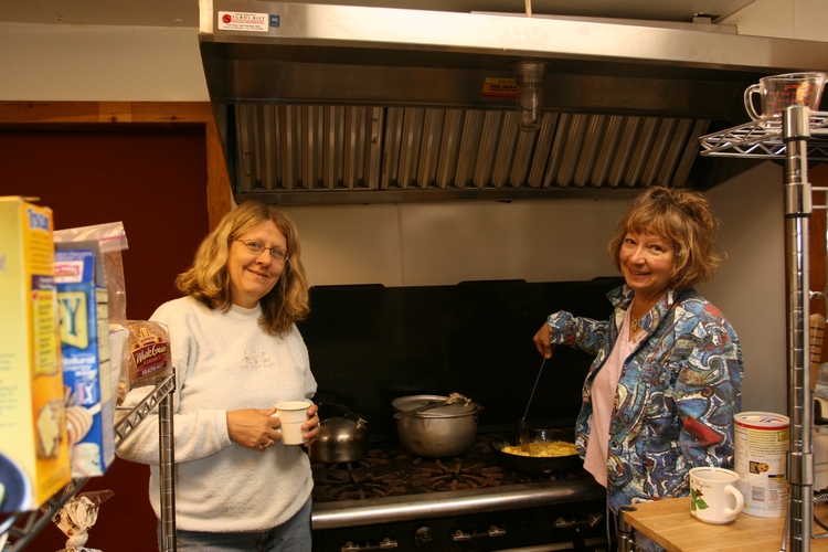 Chief cook Jane clears the table after Friday's al fresco dinner.