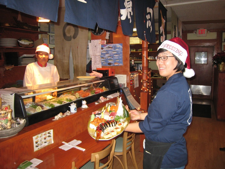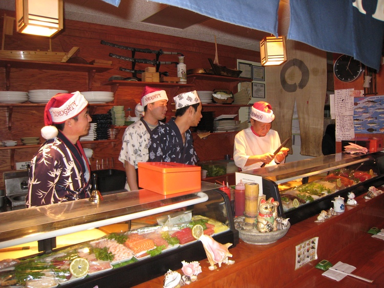 Our friendly and skilled chefs gave a bonus roll of grilled eel - gratis! It was delicious.