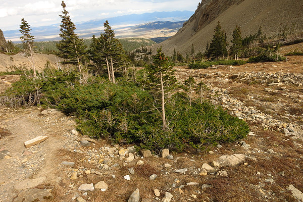 On the way up I had noticed numerous clumps of dwarfed White Spruce, the bases of which were surrounded by miniature trees - or so it seemed.