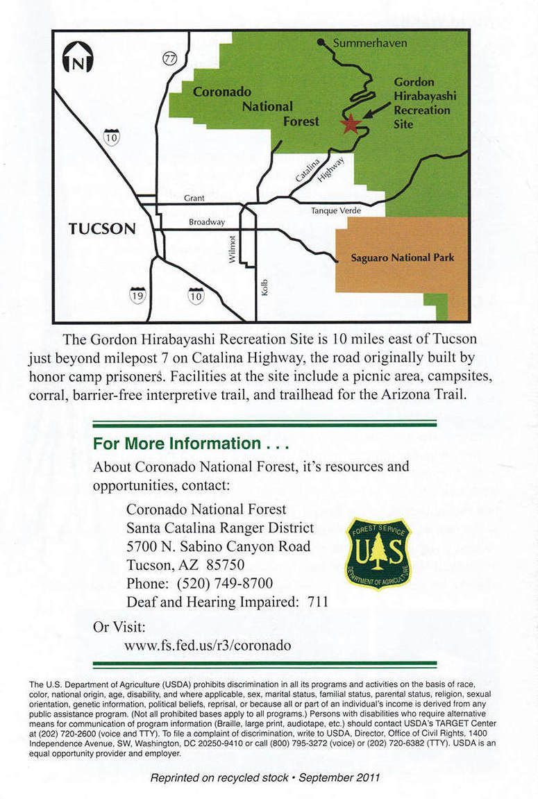 When I found this out I took it upon myself to scan the USFS "Gordon Hirabayashi Recreation Area" brochure and post it here along with this PDF of additional information.
