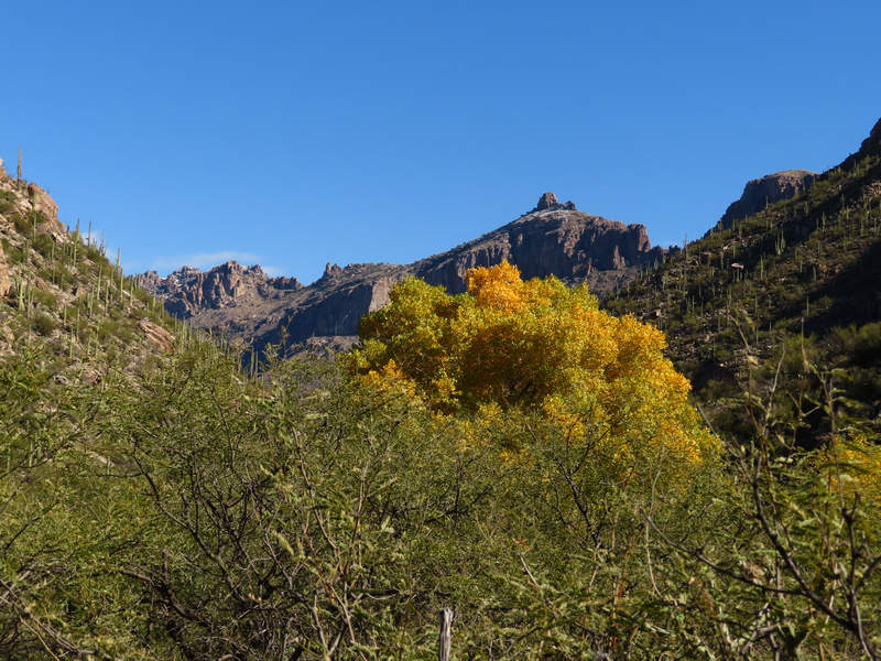 This is looking down Rattlesnake Canyon to Sabino Creek. It will soon be January and still there are leaves on some of the cottonwood and ash trees.