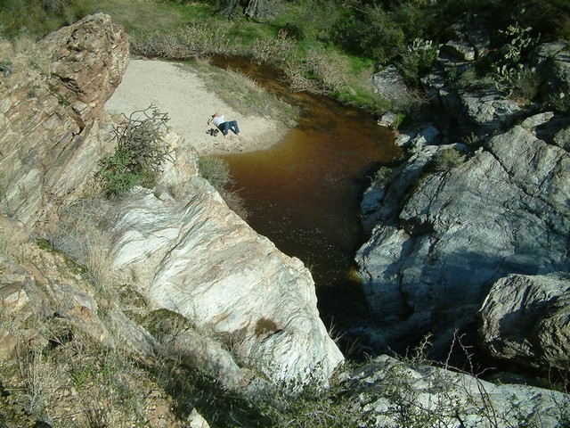 This canyon floor was scoured down to the bedrock. I am sure a bit of poking about down there would have revealed some bedrock morteros.